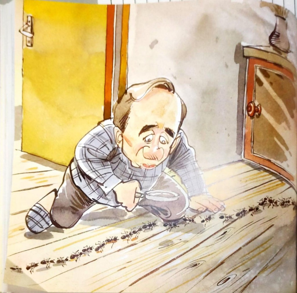 「而你們螞蟻,可能不知道情況的嚴重性,」我說,「因為我可以用殺蟲劑和這個掃把,在幾分鐘之內,就將你們全消滅光了。但這樣做,似乎並不是一個正確的方法,因為數世紀以來,我們人類就是這樣彼此互相殘殺的,而這樣做,不只沒有解決問題,反而讓情況變得愈來愈糟糕。」然後,我想起每一種生靈,總是喜歡被稱讚和被賞識的,所以,我開始將我所能想到的恭維語句,往牠們的方向發送過去。